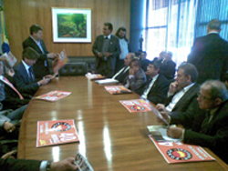 Por fim, após a reunião entre os sindicalistas, os líderes foram ao plenário do Congresso Nacional para um encontro com parlamentares. O presidente da Câmara, o deputado Michel Temer (PMDB-SP), recebeu os convidados, entre os quais estava o secretário-geral do Sintetel, Marcos Milanez.