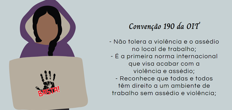 Em junho de 2019, a OIT (Organização Internacional do Trabalho) aprovou a Convenção 190, que trata da violência e do assédio no local de trabalho. Convenções são regras gerais estabelecidas em Assembleia da OIT, que possuem caráter obrigatório para os Estados que resolverem recepcioná-las, assumindo força de Lei Federal.