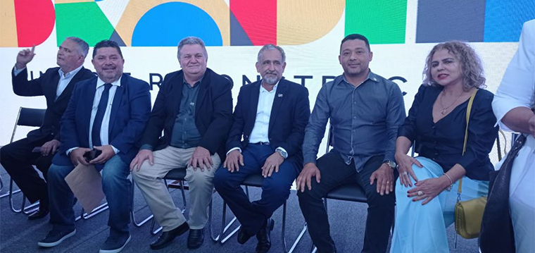 Mauro Britto, secretário Geral do SINTETEL, Gilberto Dourado, presidente do SINTETEL e da FENATTEL e Luiz Marinho, ministro do Trabalho e Emprego