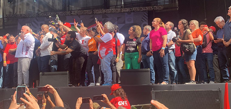“Este 1º de Maio é um dia emblemático, pois é o 1º de Maio da Democracia, o 1º de Maio do povo brasileiro que escolheu nas urnas a mudança de rumo ao trocar o Brasil do caos e da violência pelo Brasil da paz, do crescimento econômico, da inclusão social, do emprego, da distribuição de renda”, disse Ricardo Patah, presidente nacional da UGT.