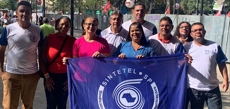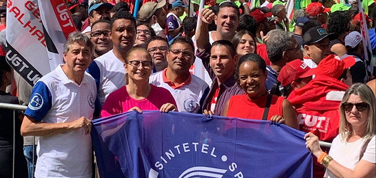 Dirigentes do SINTETEL marcaram presença no histórico do Dia do Trabalhador em que o presidente Lula anunciou o novo salário mínimo e a ampliação da faixa de isenção do Imposto de Renda.