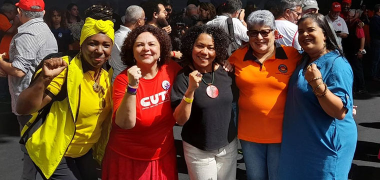 Maria Edna finalizou sua fala pedindo uma salva de palmas a todas as mulheres presentes, uma homenagem ao Ministério das Mulheres que esteve no evento em peso, com a Ministra e todas as suas secretárias executivas a convite do Fórum Nacional das Mulheres Trabalhadoras das Centrais Sindicais.