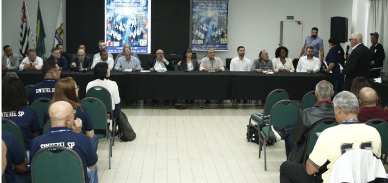 Em seguida o presidente do SINTETEL, Gilberto Dourado, falou representando todos os sintteis dos estados filiados à FENATTEL. Vamos discutir o movimento sindical e a inteligência artificial, que é um dos grandes desafios para os trabalhadores de telecomunicações. Vamos nos organizar e buscar as ferramentas possíveis para capacitar a categoria”.