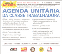 Na próxima quarta-feira, dia 3 de agosto, o movimento sindical brasileiro realiza uma grande passeata para reivindicar maior atenção às reivindicações relacionadas ao mundo do trabalho. Na ocasião, será enfatizada a Agenda Unitária da Classe Trabalhadora, cujos principais pontos são: