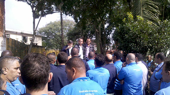 Os trabalhadores da TEL Campo Limpo, da área de Speedy/RTB, cruzaram os braços contra as mudanças propostas pela empresa na escala de revezamento. O Sintetel esteve no canteiro nesta terça-feira, 16 de julho, para organizar o protesto.