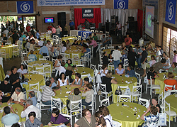 Confraternização reuniu ex-funcionários da antiga Telesp * No último sábado, dia 28/06, o Sintetel comemorou com muita festa o 7° Seminário de Aposentados de São José do Rio Preto e região. O evento, que começou às 9 horas e terminou às 18, reuniu 573 pessoas na AABB (Associação Atlética Banco do Brasil). A confraternização, que promoveu um reencontro de ex-funcionários da antiga Telesp, contou com almoço, música e muita dança, além da coleta de sangue para medir a taxa de diabetes. Leitura da composição corporal, massagens e avaliação da pressão arterial também foram disponibilizadas no local. "Hoje venho aqui para reencontrar os amigos. Fui fundador desta subsede e quando fui diretor de São José do Rio Preto sempre lutei para criações de outras regionais", comenta Sérgio Morello, ex-diretor do Sintetel na cidade. No início do evento, foi feita uma apresentação de slides sobre a história do Sindicato. "Se hoje o Sintetel representa 150.000 trabalhadores, é porque todos vocês ajudaram a construí-lo. Nunca deixaremos de realizar esse encontro", afirmou Almir Munhoz, presidente da entidade. Também compareceram ao evento o diretor da subsede de São José do Rio Preto e coordenador do Seminário, Ismar José Antônio, o diretor regional da Baixada Santista, Genivaldo Barrichello, o diretor da subsede de Bauru, Jorge Luiz Xavier, e os diretores Amândio Bispo Cruz, Virgílio Martins e Bráulio Moura. Pedro Roberto, vereador da cidade, também passou pelo local. *Escrita por Suzana Mesquita.