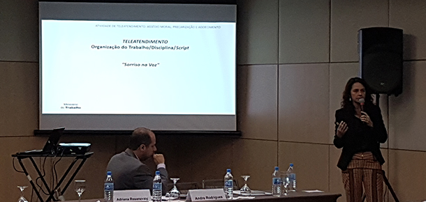 Os trabalhadores em teleatendimento sofrem com práticas de assédio moral, tentativas de precarização de direitos e com o adoecimento. O alerta foi feito pela auditora fiscal do Ministério do Trabalho, Dr. Odete Cristina Pereira Reis. Ela foi a primeira palestrante do encontro da UNI, sindicato internacional a qual o Sintetel é filiado, sobre organização no teleatendimento na América. O evento acontece em 19 e 20 de julho, em São Paulo.