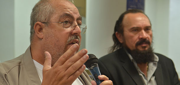 Ricardo Patah (UGT), Almir Munhoz (Sintetel) e Paulinho (Força Sindical)