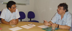 Os trabalhadores em telecomunicações da Costa Rica estão vivendo uma situação que, aqui no Brasil, nós vivenciamos em 1998. Trata-se da privatização do setor de telecom. A sociedade e os trabalhadores costarriquenhos estão mobilizados em luta contra a venda do patrimônio público à iniciativa privada. Segundo o sindicalista Ronald Corrales Chacon, da Frente Interna de Trabalhadores - FIT, a mobilização está crescendo e a luta está cada vez mais organizada. No dia 26 de março foi realizada uma Marcha contra a Privatização das Telecomunicações que reuniu cerca de 250 mil pessoas nas ruas. O SINTETEL recebeu a visita do companheiro Ronald e está solidário com a luta do povo da Costa Rica. Na foto: José Carlos Guicho, vice presidente do Sintetel presta solidariedade ao representante dos trabalhadores em energia e telecomunicações da Costa Rica, Ronald Corrales Chacon.