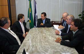 Na foto, em sentido horário, AntonioToschi, assessor sindical, o deputado e presidente da Força Sindical, Paulo Pereira da Silva, o ministro do Trabalho Carlos Lupi, o Secretário de Relações do Trabalho, Luis Antonio de Medeiros, Almir Munhoz, presidente do Sintetel e Gilberto Dourado, presidente da Fenattel.