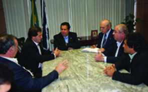 Sintetel em reunião com o Ministro Lupi: na foto, em sentido horário, AntonioToschi, assessor sindical, o deputado e presidente da Força Sindical, Paulo Pereira da Silva, o ministro do Trabalho Carlos Lupi, o Secretário de Relações do Trabalho, Luis Antonio de Medeiros, Almir Munhoz, presidente do Sintetel e Gilberto Dourado, presidente da Fenattel.