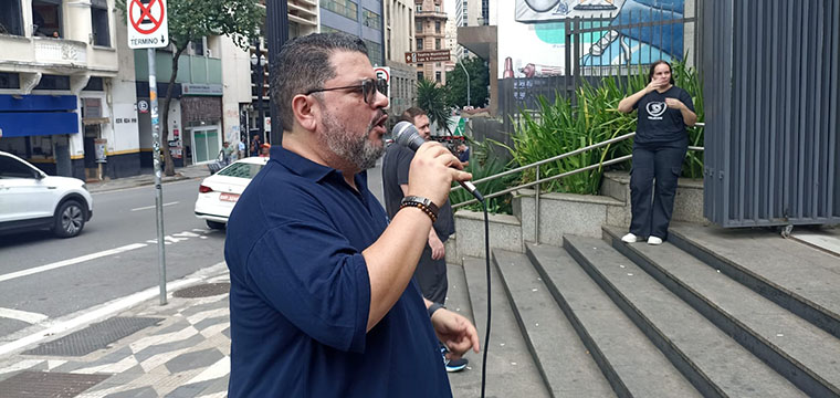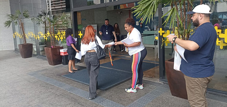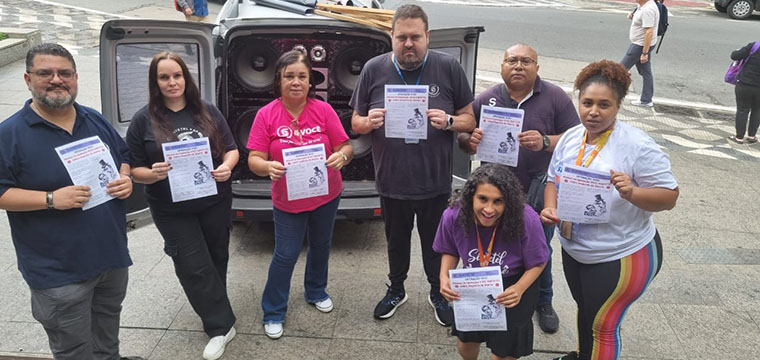 Na segunda-feira, 28/04, o SINTETEL protestou em frente ao prédio da Atento São Bento e cobrou uma solução imediata contra os abusos que ocorrem na Operação VIVO.