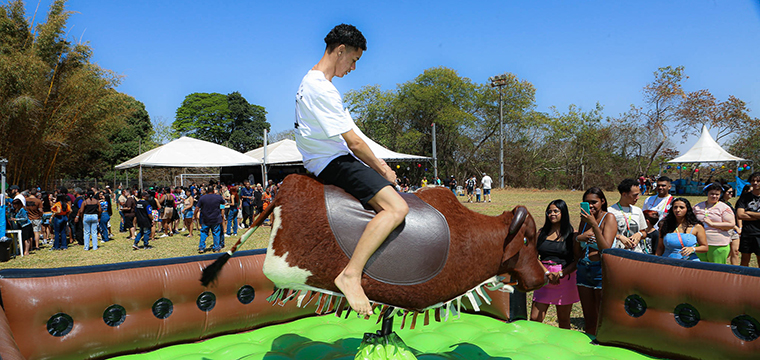 A festa contou com café da manhã, sorteio de brindes, plataforma 3D, touro mecânico, churrasco, chopes e refrigerante.