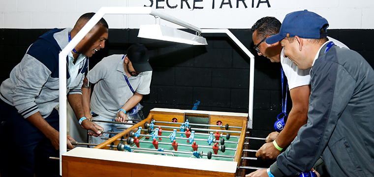 Os convidados se divertiram com as atrações, como cabine de fotos, simulador de corrida, futmesa, pebolim, cabine de fotos, sorteios de prêmios, chopes, churrasco e picolés.