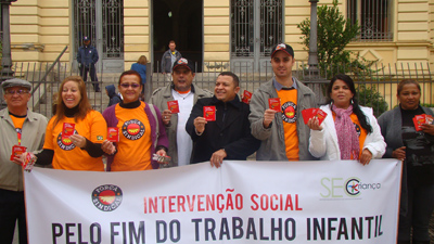 Com o slogan “Cartão Vermelho para o Trabalho Infantil”, os manifestantes alertavam, em clima de copa do mundo, a necessidade de “driblar o trabalho infantil, com investimento na educação”.