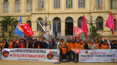 Nesta quinta-feira, dia 10 de junho, a Força Sindical realizou uma manifestação para lembrar o Dia Mundial contra o Trabalho Infantil, celebrado dia 12 de junho. A mobilização aconteceu na Praça da República e contou com a participação de uma comitiva do Sintetel liderada pelo diretor da entidade Fábio de Oliveira, que também é responsável pela Secretaria Estadual da Criança e do Adolescente da Força Sindical.