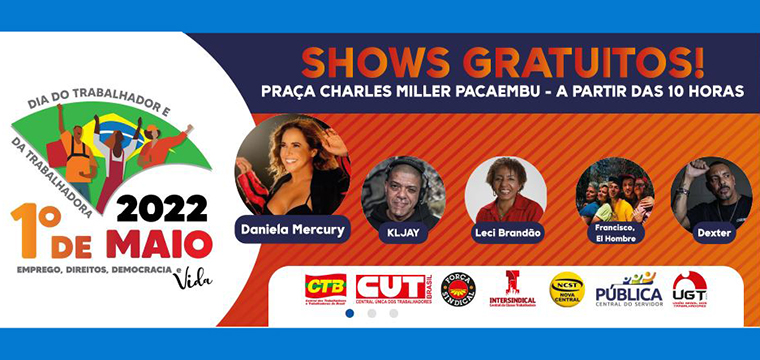 Nesta terça-feira (19), na Praça Ramos, em frente ao Teatro Municipal, a partir das 10 horas, a União Geral dos Trabalhadores (UGT) e as demais centrais sindicais farão o lançamento do 1º de Maio Unificado 2022.
