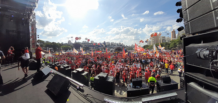 “Vocês leram que a inflação é a maior dos últimos 27 anos. Isso significa que o salário mínimo diminuiu, o carrinho tem menos compra. Na mesa na hora de almoço têm menos alimentos para suas famílias comerem. Nossa luta será a de diminuir a inflação e aumentar salários para que o povo possa comer e viver melhor nesse país”, afirmou Lula.