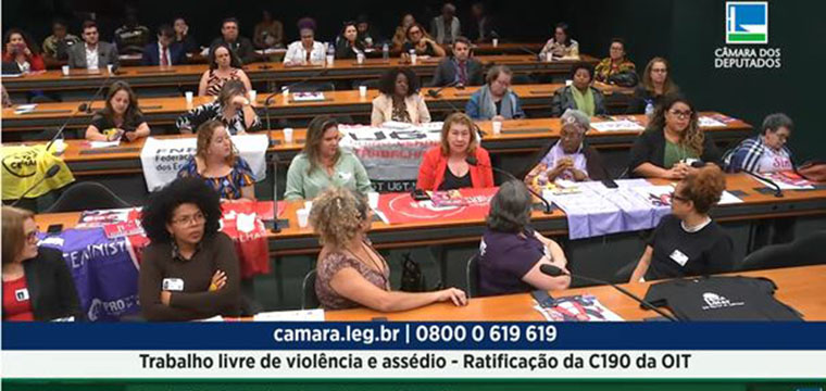 No dia 08 de março, o presidente Lula enviou à Câmara dos Deputados a proposta de ratificação da Convenção 190, mas só entra em vigor no Brasil após aprovação pelas duas Casas do Congresso Nacional (Câmara e Senado).