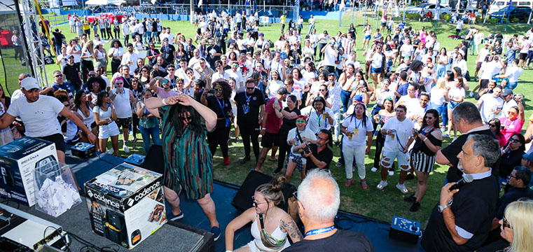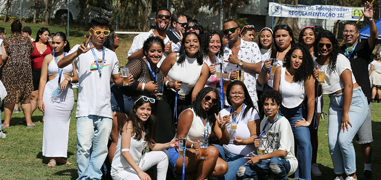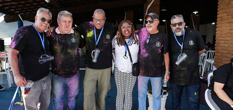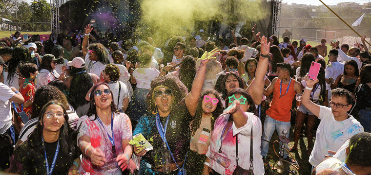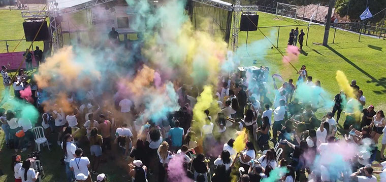 E no SINTETEL Holi Festival não foi diferente. Os cerca de 600 trabalhadores e trabalhadoras associados do SINTETEL pertencentes a Almaviva, Atento, Fidelity, Concentrix, Orbitall, SX, Teleperformance e VIVO se jogaram ao som de três DJs que se apresentaram durante o evento.