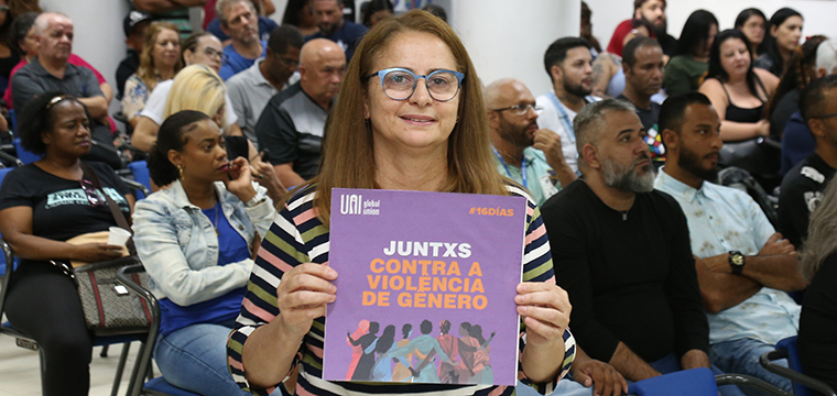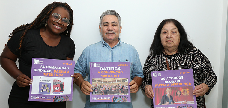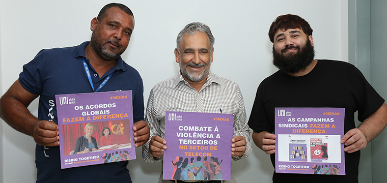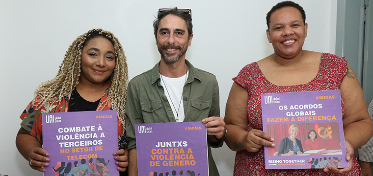 A UNI, sindicato global o qual o SINTETEL e a FENATTEL são filiados, mobiliza entidades de todo o Mundo nos dias da Campanha de ativismo. A cada dia um compromisso é assumido por homens e mulheres no sentido de romper com a violência de gênero.