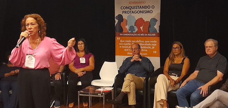 Nesta quarta-feira, 27/03, dirigentes do SINTETEL participaram do seminário “Conquistando o Protagonismo”, promovido pela UGT estadual São Paulo, evento que ocorreu na sede do sindicato de asseio e conservação – SIEMACO, na capital. A atividade, organizada pela secretária da Mulher, Debora Machado; e pela secretária da Juventude Estadual SP, Daniela Bitencourt; faz parte da agenda do Mês das Mulheres.