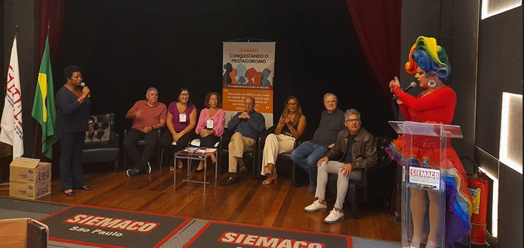 Participaram do evento: o presidente da UGT estadual SP, Amauri Mortágua e o presidente Nacional da central, Ricardo Patah; Cássia Bufelli e Cleonice Caetano, vice-presidentas da UGT Nacional; Paolla Miguel, vereadora e presidente da Comissão de Direitos Humanos de Campinas; Léo Áquila, coordenadora Municipal da Diversidade da cidade de São Paulo; Renata Belzunces, economista e socióloga do DIEESE na subseção de São Jose dos Campos; e a drag queen Tchaka, personagem do ator Valder Bastos, que realizou a condução e animação na atividade.