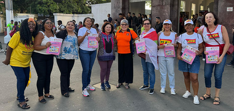Na manhã desta quinta-feira, 6 de março, o Fórum Nacional de Mulheres Trabalhadoras das Centrais Sindicais, com as representantes da CSB, CUT, CTB, Força Sindical, Intesindical, Nova Central e UGT realizou uma panfletagem no Largo da Concórdia, no centro de São Paulo.