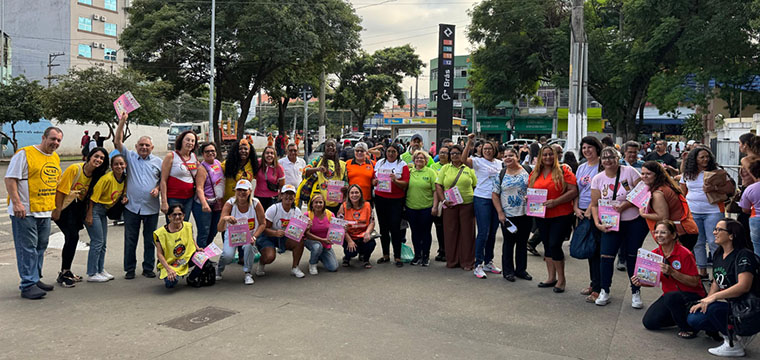 O material distribuído abordou a Lei de Política Nacional de Cuidados, 15.069/2024 e a Lei da Igualdade Salarial, 14.611/2023, que representam um marco importante de políticas públicas, visando a igualdade de oportunidade, inclusão e justiça social. A ação marcou a abertura do Mês da Mulher, que tem como tema “Sem cuidado e sem igualdade, não há democracia”.