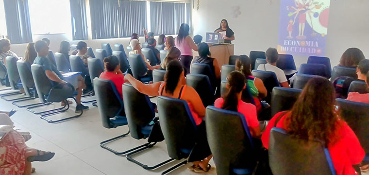 Na ocasião, a diretora do SINTETEL e secretária da Mulher da UGT, Maria Edna Medeiros, apresentou aos presentes a cartilha “Economia do Cuidado” elaborada pela central sindical. Além da cartilha, Maria Edna também destacou o Fórum Nacional de Mulheres Trabalhadoras das Centrais Sindicais abordando a lei que rege sobre Política Nacional de Cuidados, igualdade salarial e o Relatório de Transparência Salarial e de Critérios Remuneratórios.