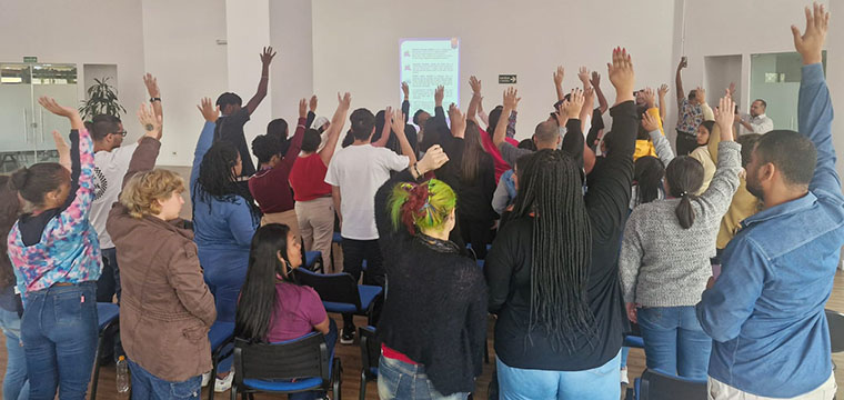 Na quarta-feira, 21/05, o SINTETEL realizou três assembleias com os trabalhadores da TATHO para avaliar a proposta de Acordo Coletivo Trabalho e do PPR 2025/2026. As duas propostas foram aprovadas por ampla maioria.
