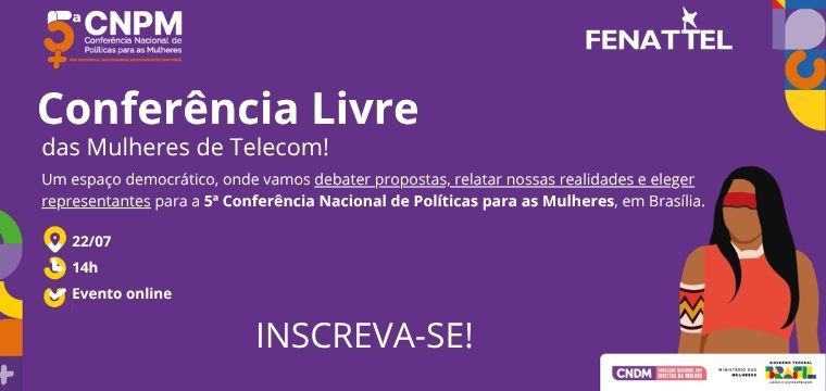 Está chegando a nossa Conferência Livre das Mulheres em Telecom, rumo à 5ª Conferência Nacional de Políticas para as Mulheres (CNPM), um espaço construído por e para mulheres, com diálogo, troca, escuta e propostas reais para transformar o nosso país. 💪