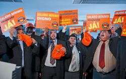 As centrais sindicais continuam firmes na batalha por um reajuste maior do salário mínimo. Nesta terça-feira, dia 15 de fevereiro, dezenas de representantes da classe trabalhadora lotaram o plenário da Câmara para reivindicar aumento no valor de R$ 545 defendido pelo governo federal. O protesto acontece durante a comissão-geral que debate o assunto com o ministro da Fazenda Guido Mantega, para quem um reajuste mais alto poderá gerar inflação.