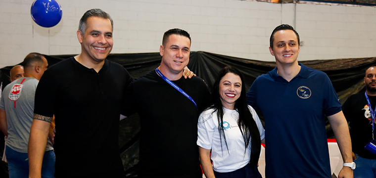 Os convidados se divertiram com as atrações, como cabine de fotos, simulador de corrida, futmesa, pebolim, cabine de fotos, sorteios de prêmios, chopes, churrasco e picolés.