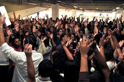 Temos que destacar que as empresas só apresentaram uma nova proposta mediante a mobilização e a organização dos trabalhadores junto com o Sindicato. Valeu, trabalhador, nossa luta deu resultado! Ao entender o momento e o avanço da nova proposta, os trabalhadores aprovaram a Convenção Coletiva 2011.