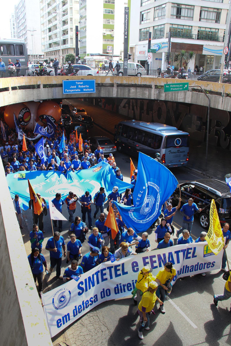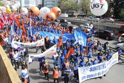 As centrais sindicais brasileiras, incluindo a Força Sindical, a qual o Sintetel é filiado, realizou entre o fim da manhã e o início da tarde desta quarta-feira uma grande manifestação para reivindicar diversas melhorias trabalhistas, entre as quais se destaca a redução da jornada de trabalho para 40 horas semanais.