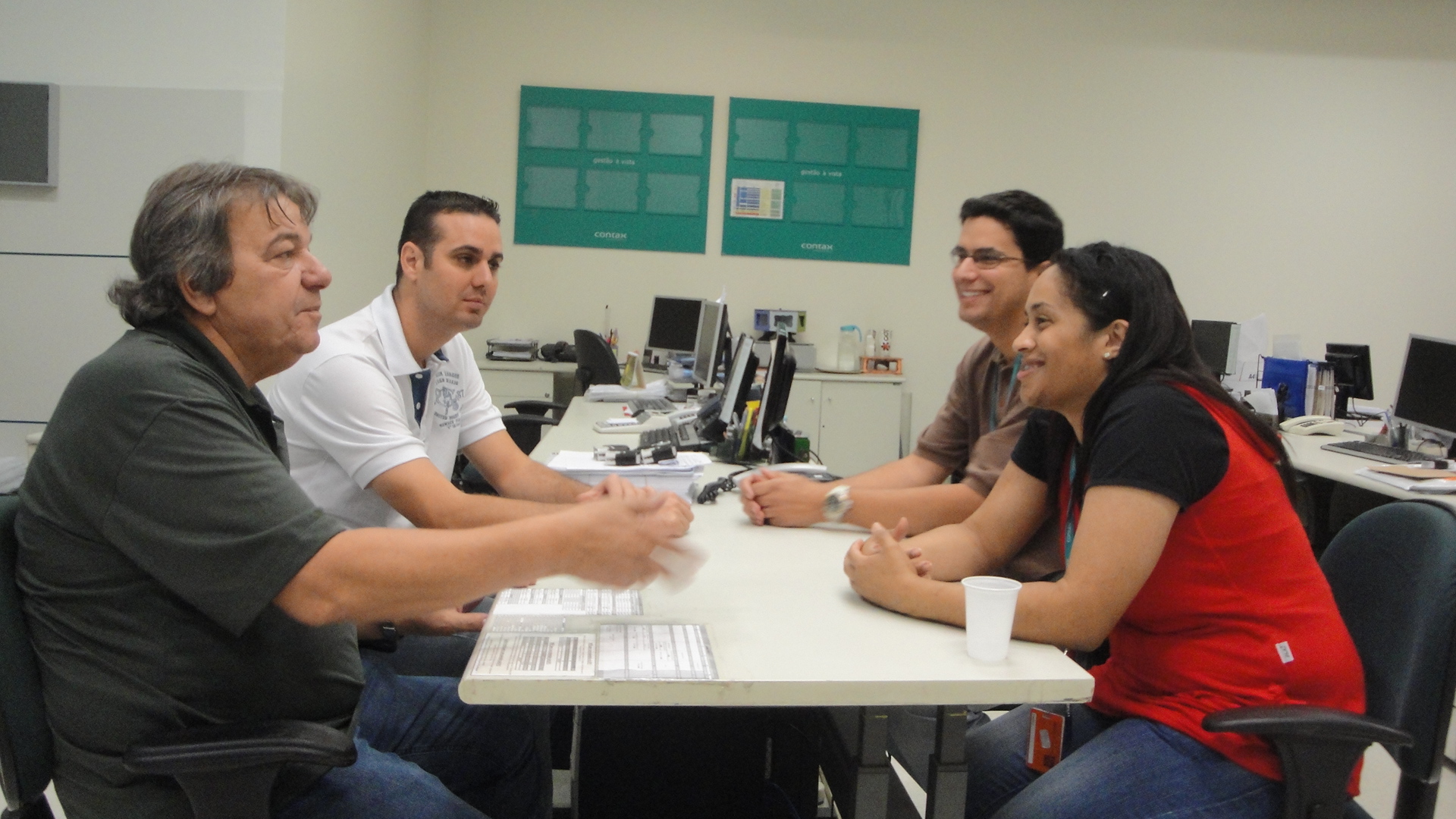 Após inspeção do local, os diretores participaram de uma reunião com o RH da Contax representado pelo gerente geral, Leonardo de Abreu e a assistente Rosângela Peixoto.