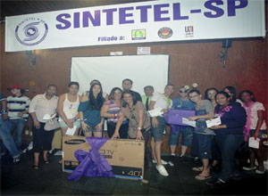 Em meio as apresentações, o casal de teleoperadores, Aline Dias da Atento República e Ademir Rodrigues da Atento Santo Antônio, subiram no palco para agradecer o Sindicato. A confraternização do teleoperador realizada em 2011 deu a eles a oportunidade de se conhecerem e, hoje estão casados. “Depois da festa não nos desgrudamos mais. Só temos a agradecer ao Sintetel”, declarou o casal.