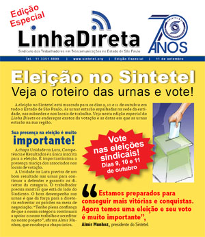 A eleição no Sintetel está marcada para os dias 9, 10 e 11 de outubro em todo o Estado de São Paulo. As urnas estarão espalhadas na sede da entidade, nas subsedes e nos locais de trabalho.
