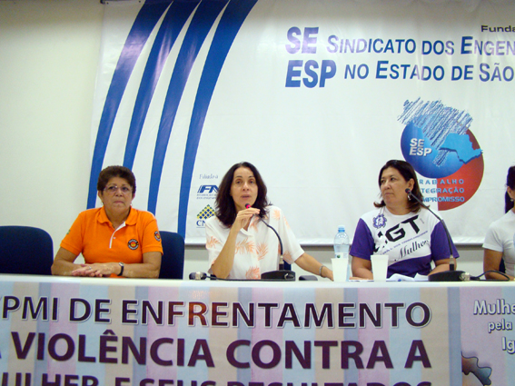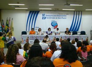 Como o último ato da Campanha 16 dias de ativismo pelo fim da violência contra a mulher, trabalhadoras filiadas às centrais sindicais CGTB, CTB, Força Sindical, NCST e UGT participaram do Fórum Nacional de Mulheres. O evento aconteceu no auditório do Sindicato dos Engenheiros, em São Paulo.