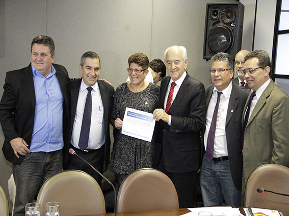 Na foto Dirigente do Sintetel, Mauro Cava e outros dirigentes da Força Sindical junto com os ministros Gilberto Carvalho e Manoel Dias.