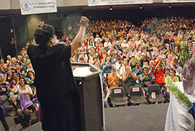 Participantes de todo o Estado de São Paulo acompanharam o discurso da norte-americana Joyce Robinson (foto), presidente da Uni Américas Mulheres, que afirmou nunca ter presenciado um evento tão grande em comemoração à data: "nós, dos Estados Unidos, temos muito a aprender com as brasileiras, que devem sempre mostrar sua união e companheirismo".