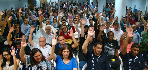 Após a aprovação da ordem do dia, o presidente do Sintetel, Almir Munhoz, falou sobre as dificuldades encontradas pelo movimento sindical, sobretudo o Sintetel, para enfrentar a crise política, econômica e moral que atinge o Brasil. “O País passa por sérias dificuldades e isto tem refletido nas negociações coletivas. Mas tenho a esperança que nós, brasileiros, sairemos dessa situação”, avalia.