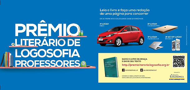 Assim como já fez no passado, o Sintetel abre espaço para a Fundação Logosófica divulgar seu Prêmio Literário Universitário. Desta vez, o concurso é voltado para os professores de todos os segmentos educacionais do Brasil e distribuirá prêmios aos dez primeiros colocados. O vencedor será presenteado com um carro zero quilômetro.