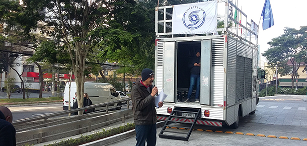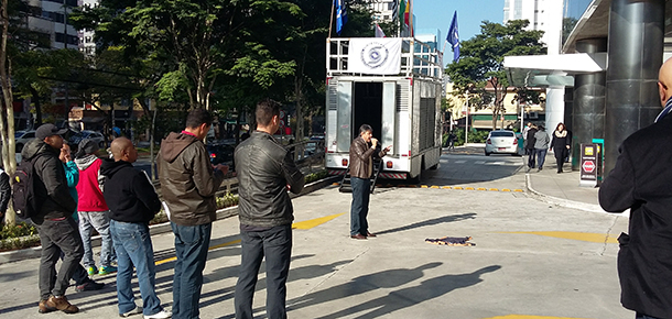 O Sintetel organizou na manhã desta quarta-feira, 15 de junho, um protesto na porta da Vivo. Os ex-trabalhadores da HS Paiva fizeram um ato no qual reivindicavam o pagamento de verbas devidas.