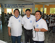 * Já tradicional na categoria, o Seminário do Sintetel para aposentados da antiga CTBC e Telesp (região do ABC e Alto Tietê) foi um sucesso. Com cerca de 250 participantes, o evento foi realizado no dia 5 de abril, na Chácara Casarão, em São Bernardo do Campo. Estiveram presentes o vice-presidente do Sindicato, José Carlos Guicho, o presidente da Fenattel, Gilberto Dourado, e os companheiros Marcos Milanez, Maria Edna Medeiros e Rosilene Brandão. Representando o Sindicato Nacional dos Aposentados (Sindinap), estiverem presentes Germar Pereira da Silva, Arlindo Carrocci e Luiz Martinelli. A festa foi coordenada pelo diretor da subsede do ABC, o companheiro Mauro Cava de Britto, que não mediu esforços para agradar o público. Foto: Da esquerda para a direita: José Carlos Guicho (vice-presidente Sintetel), Marcos Milanez (Fenattel) e Mauro Cava de Britto (diretor social Sintetel) * Escrita por Amanda Santoro.