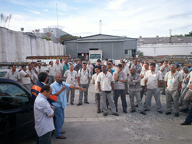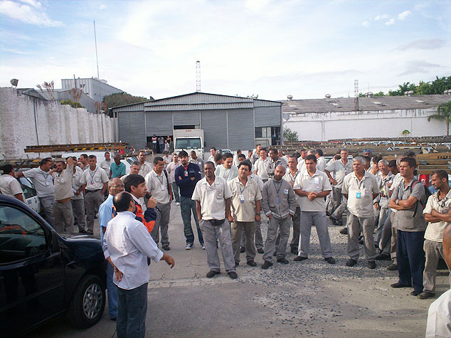 A empresa irá cumprir o acordo firmado anteriormente com o Sintetel, e efetua hoje o pagamento da segunda parcela do valor do PPR referente ao ano de 2008 (dia 20/03, sexta-feira). Na foto, os diretores do Sindicato Bráulio Moura (com microfone) e Marcos Milanez explicam a situação aos trabalhadores da empresa.