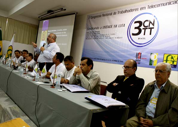 A cidade de Serra Negra recebe a partir de hoje, dia 16 de setembro, 19 sindicatos de todo o Brasil para o 3º Congresso Nacional de Trabalhadores em Telecomunicações, organizado pela Federação Nacional do setor, a Fenattel. Entre os sindicatos presentes, além do Sintetel, compuseram a mesa de abertura representantes dos Sintéis Rio de Janeiro, Paraná, Pernambuco, Roraima, Goiás e Amazonas, sendo que muitos deles falaram em nome de suas regiões, não apenas de seus estados. Na abertura ocorrida nesta quarta-feira de manhã, os cerca de 300 participantes acompanharam as palestras ministradas por Marcos Verlaine, do DIAP, Silvestre do Prado, do DIEESE, Fernando Pimentel, da Fundação Atlântico, João Guilherme Vargas Netto, assessor sindical e Maurício Rombaldi, sociólogo.