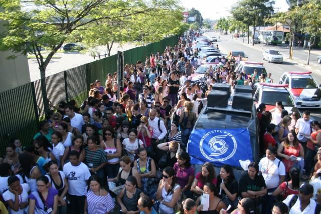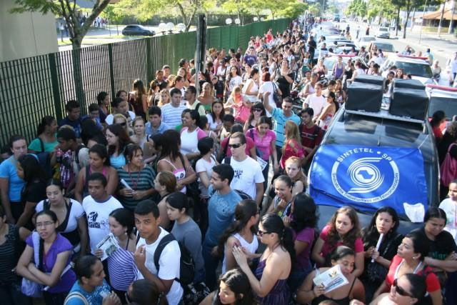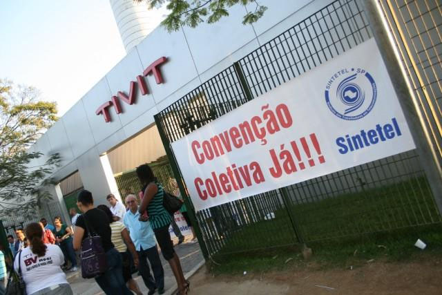 No último dia 5 de novembro, os trabalhadores da Tivit Mogi das Cruzes realizaram, em conjunto com o Sindicato, um protesto pelo cumprimento integral da Convenção Coletiva de Trabalho 2009/2010. A Tivit insiste em não seguir o documento que o restante da categoria já adota, pois não pretende pagar o abono salarial de R$ 240,00, como também não quer reajustar o vale-refeição. A situação em Mogi é ainda mais crítica, pois a empresa não pagou um único centavo do abono.