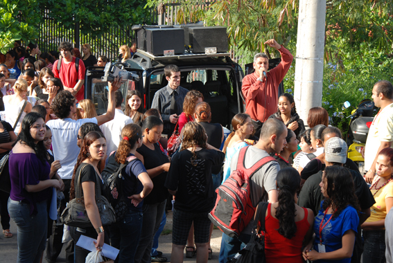 O protesto começou por volta das 7h. Os trabalhadores, ao descerem dos ônibus, imediatamente aderiam ao movimento. Pouco antes das 9h, o Sindicato organizou uma assembléia na qual os teleoperadores votaram a favor do cumprimento da Convenção.